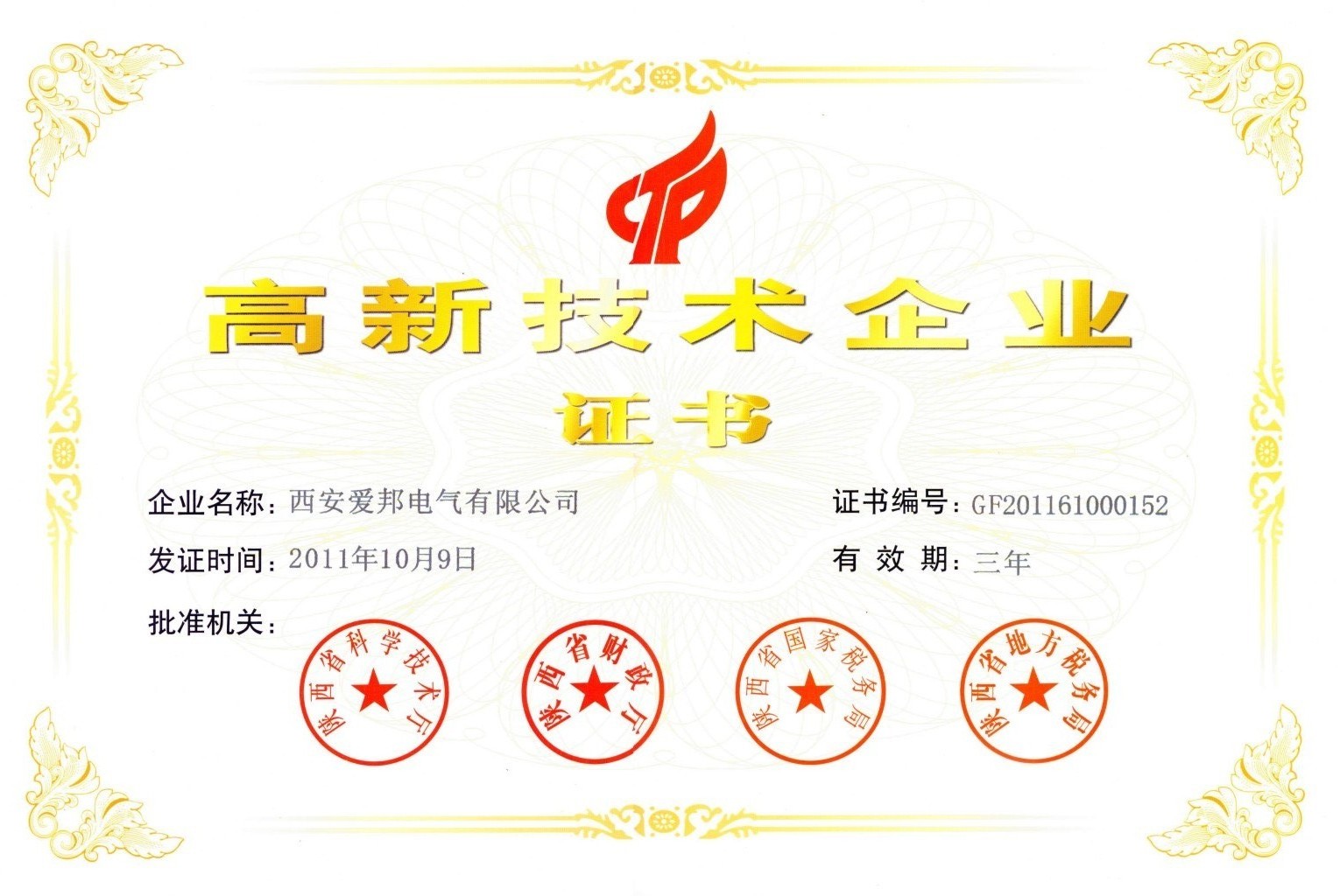 • 高新技術企業證書